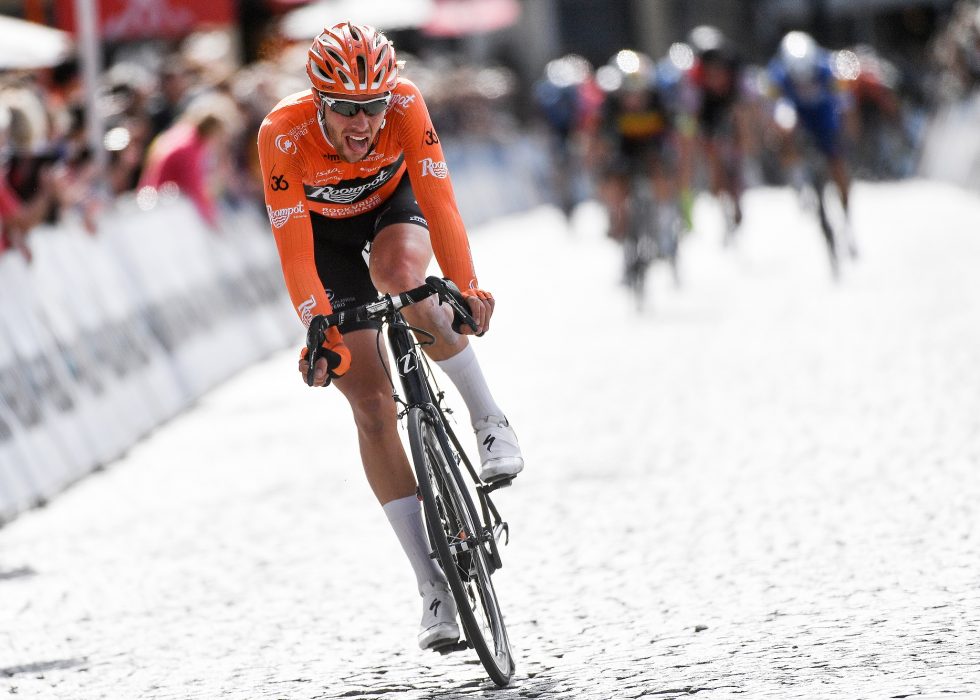 Jan-Willem van Schip var siste overlevende rytter fra bruddet, og skulle vise seg vanskelig å kjøre inn. Den solide banerytteren fra Roompot-Charles angrep fra utbrytergruppa, og hadde fortsatt 30 sekunder med fire kilometer igjen.