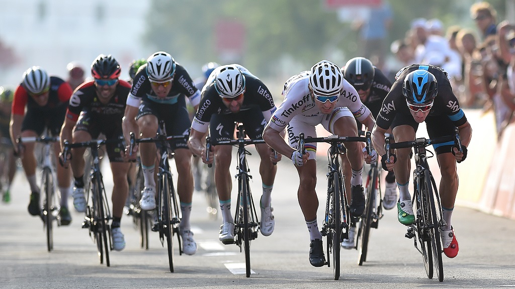 Nå var verdensmesteren mer på samme bølgelengde som Bennati, som nok en gang posisjonerte seg fantastisk. Men Sagan var litt uheldig med timingen. Akkurat da han startet spurten hadde Viviani lagt inn en liten akselerasjon for å komme seg opp på Sagans hjul.